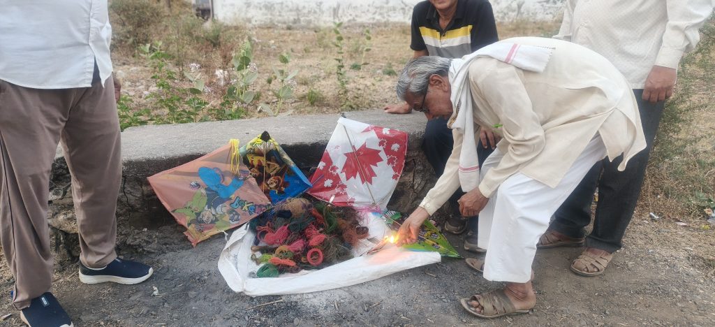 शेती, पायवाटा आणि उंच झाडांवर अडकलेले मांजाचे शेकडो गुंते या टीमने जिवाची पर्वा न करता काढून नष्ट केले.दशकापूर्वी केवळ दोघांनी सुरू केलेला हा छोटासा उपक्रम आज एका मोठ्या चळवळीचे रूप धारण करत आहे. या मोहिमेच्या सांगतेच्या वेळी ज्येष्ठ सदस्य वाघ सर यांच्या हस्ते जप्त केलेल्या मांज्याची होळी पेटवण्यात आली. या यशावर भाष्य करताना प्रा.पाटील यांनी मजरूह सुलतानपुरी यांचा एक प्रसिद्ध शेर उद्धृत केला:”मै अकेला ही चला था जानिब-ए-मंजिल मगर,लोग साथ आते गये और कारवा बनता गया!”पक्षांसाठी जीवघेणा ठरतोय मांजा पतंगबाजीसाठी वापरला जाणारा नायलॉन किंवा काचयुक्त मांजा झाडांवर वर्षानुवर्षे अडकून राहतो. यात अडकून दरवर्षी शेकडो पक्षी आपला जीव गमावतात किंवा कायमचे जायबंदी होतात. ही बाब लक्षात घेऊन या टीमने राबवलेल्या सातत्यपूर्ण उपक्रमाचे सर्वत्र कौतुक होत आहे.