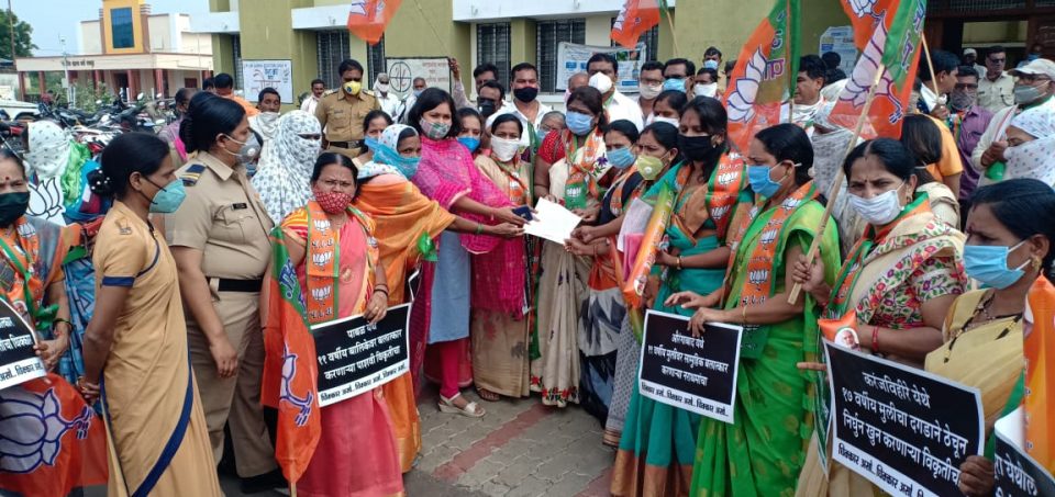 खामगांव : आ.तथा भाजपा जिल्हाध्यक्ष ॲड. आकाश फुंडकर यांच्या आवाहनाला प्रतिसाद देत भाजप महिला आघाडीच्या वतीने राज्य सरकारला तहसील कार्यालयामार्फत आज निवेदन देण्यात आले.राज्यात महाविकास आघाडी सरकारच्या काळात अनेक ठिकाणी बलात्कार ,अत्याचार, विनयभंग व हत्याकांडाचे सत्र सुरूच आहे. त्यातच कोरोना महामारी सारख्या अती संवेदनशील काळातही शासनाच्या कोविड सेंटर व हॉस्पिटल्स मध्ये महिलांवरील अत्याचार आणि विनयभंगाचे सत्र सुरूच आहे. या वरून हे सरकार महिला सुरक्षिततेबाबत उदासीन,असंवेदनशिल व निष्क्रीय असल्याचे स्पष्ट होते, त्यामुळे हया बिघाडी सरकारला झोपेतून जागे करण्यासाठी आजच्या या आक्रोश आंदोलनात महिलां मोठया संख्येने सहभागी झाल्या होत्या. राज्यातील कायदा सुव्यवस्थेची परिस्थिती अत्यंत दयनिय झालेली असून राज्यात महिला हया शासनाव्दारे स्थापन केलेल्या कोव्हीड सेंटरमध्येच सुरक्षीत नाही त्यामुळे संपुर्ण राज्यात महिलांच्या सुरक्षेची काय अवस्था असेल हे सर्वश्रृत आहे. त्यामुळे भाजपा महिला मोर्चा महाराष्ट्र प्रदेश तर्फे दिनांक १२ आक्टोंबर रोजी राज्यव्यापी आंदोलन करण्यात आले.सर्व महिला आघाडी तर्फे उपविभागीय अधिकारी यांना नायब तहसीलदार जगताप मॅडम ह्यांना निवेदन देण्यात आले. ह्यावेळी प्रदेश कार्यकारिणीच्या अनिता देशपांडे, नगराध्यक्ष अनिता डवरे, महिला आघाडी तालुका अध्यक्षा सौ उर्मिला गायकी,शहराध्यक्ष रेखा जाधव,जान्हवी कुळकर्णी,दुर्गा हट्टेल,लता गरड, भारती गलांडे, लक्ष्मी मिश्रा, स्नेहा चौधरी, भक्ती वाणी, संतोष पुरोहित, रत्नमाला पिंपळे, शिवानी कुलकर्णी, शितल मुंडे, रेखा भोरे, बोर्डे काकू, श्रद्धा धोरण, शिवानी कुलकर्णी, चंद्रशेखर पुरोहित सुरेश गव्हाळ, शरदचंद्र गायकी, संजय शिंनगारे,डॉक्टर एकनाथ पाटील,समाधान मुंडे,राम मिश्रा, जितेंद्र पुरोहित यांचेसह मोठ्या प्रमाणात महिला पदाधिकारी कार्यकर्ते उपस्थित होते.